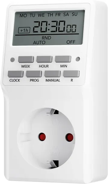 • Automatyczne włączanie i wyłączanie: Możliwość programowania z dokładnością do minuty, pozwalająca na automatyczne włączanie i wyłączanie podłączonych urządzeń do 20 razy dziennie.