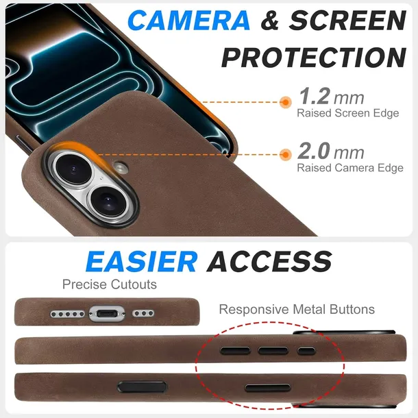 Etui Shieldon Slim to eleganckie połączenie naturalnej skóry bydlęcej klasy premium, nowoczesnej ochrony oraz pełnej kompatybilności z MagSafe, stworzone specjalnie dla Apple iPhone 17 (6.3”, 2025, 5G).